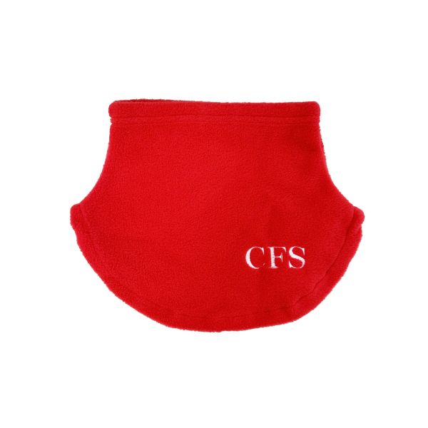 - Red neck warmer with the School crest embroidered to front