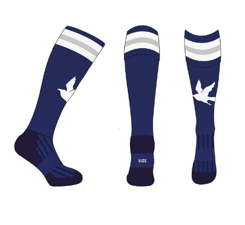 – Navy, Silver and white sports socks