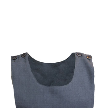 – Grey round neck pinafore with matching pearlescent buttons to shoulders