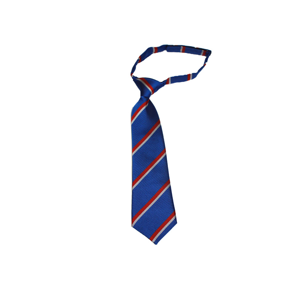 – Royal blue, Red and silver striped tie