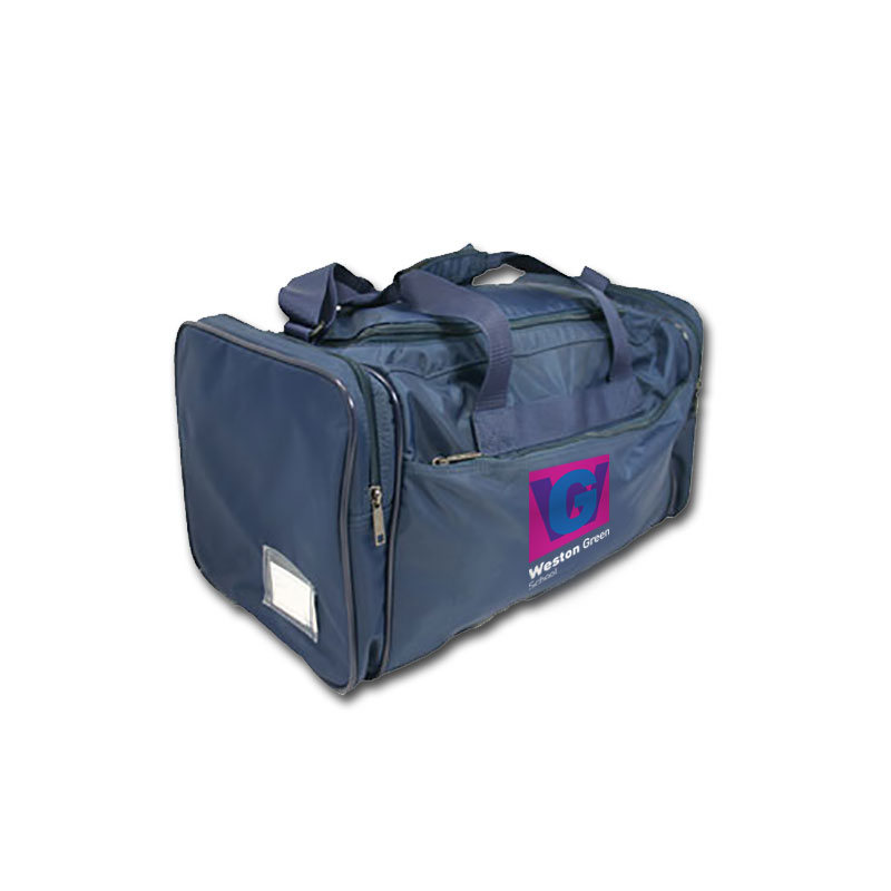 The Weston Green school logo is embroidered onto the side of the bag